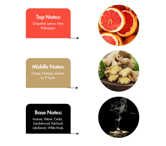 Notes: Grapefruit, Lemon, Ginger, Mint, Cedar, Sandalwood, Frankincense